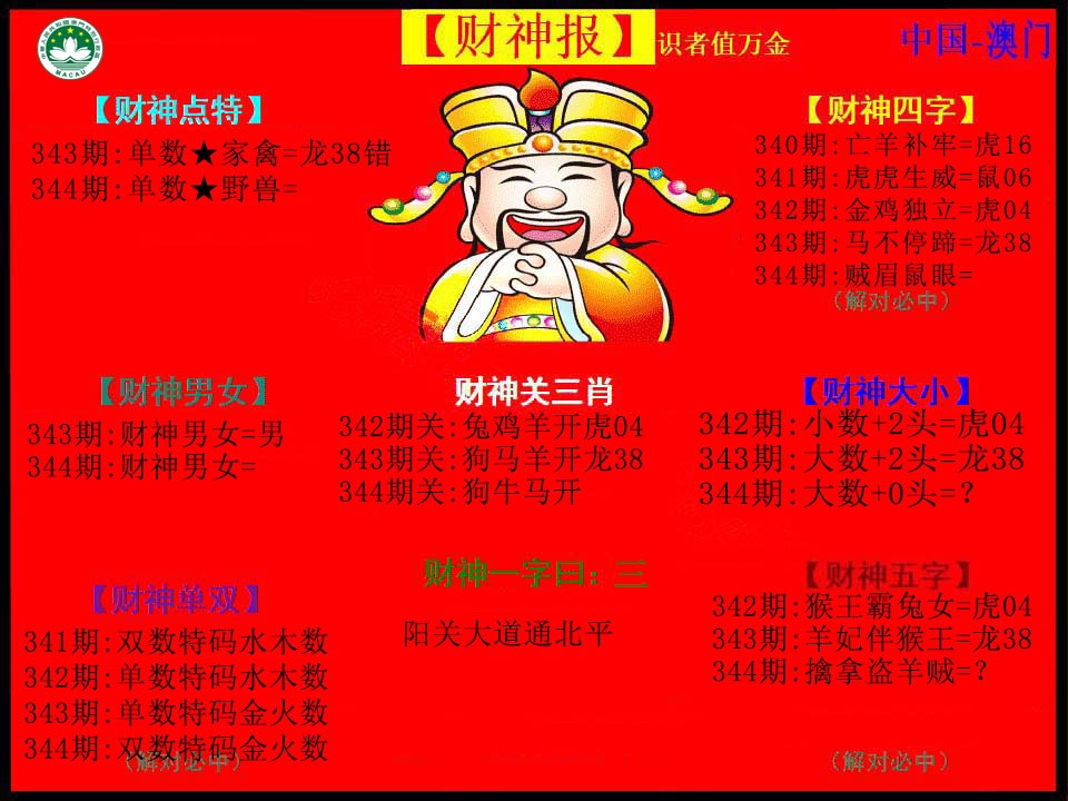 344期: 澳门六合彩红姐彩圖信封【黄财神报】每期自动更新